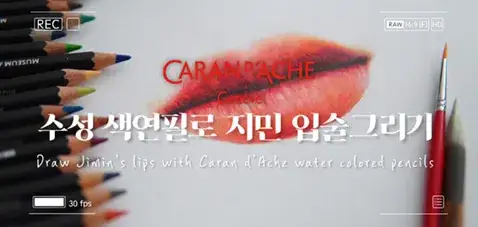 까렌다쉬 뮤지엄 아쿠아렐 수성색연필로 입술 그리기