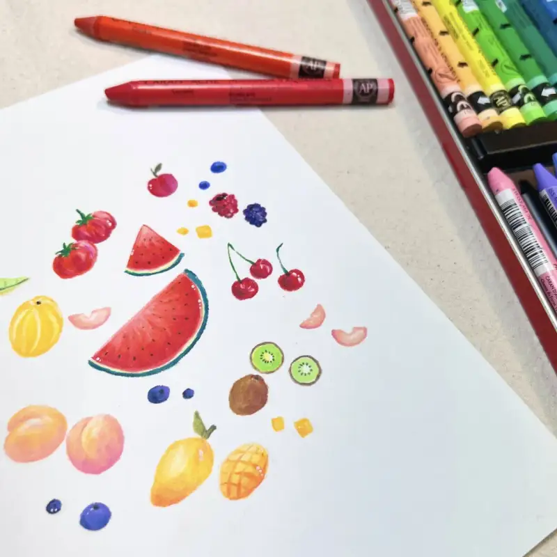 까렌다쉬 수성크레용으로 그린 여름 과일