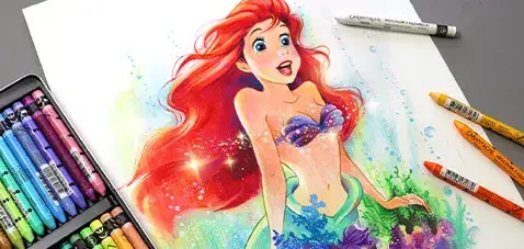 색연필보다는 크레파스 느낌에 가깝고 물이 닿으면 물감 효과를 낼 수 있는 신기한 재료예요