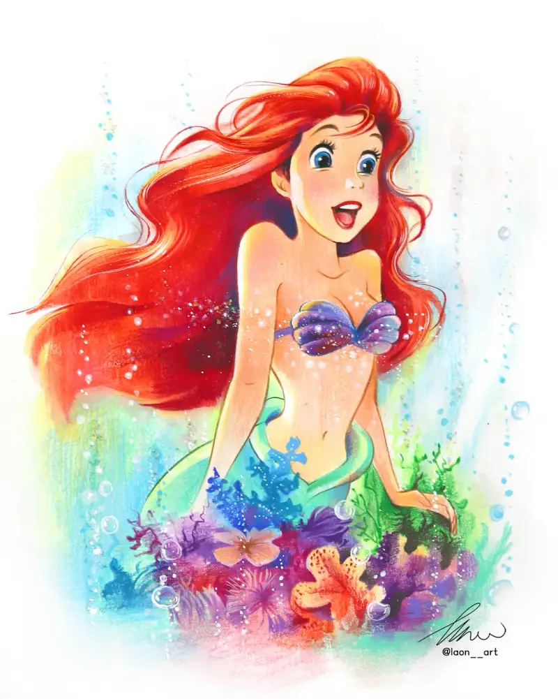 제가 어릴 적 너무 좋아했던 인어공주를 알록달록하게 그리고 반짝이 과슈까지!