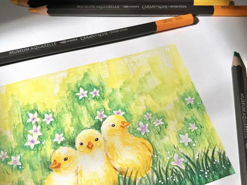 지난 여행지 풍경에 이어 까렌다쉬 뮤지엄 아쿠아렐 수채색연필 40색 + 까렌다쉬 드로잉 패드로 그려본 귀여운 뼝아리들🐤🐤🐤