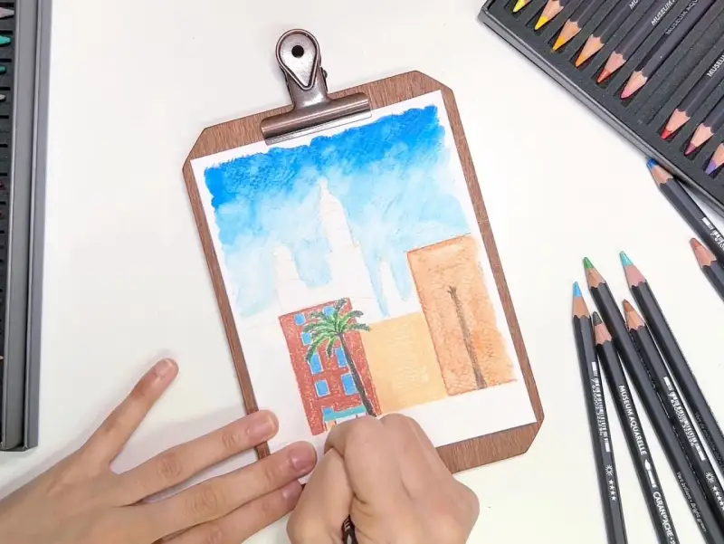 이렇게 수채색연필 하나로 수채화+색연필 두가지의 느낌을 내어 여행지의 풍경을 간편하게 완성할 수 있었는데요!