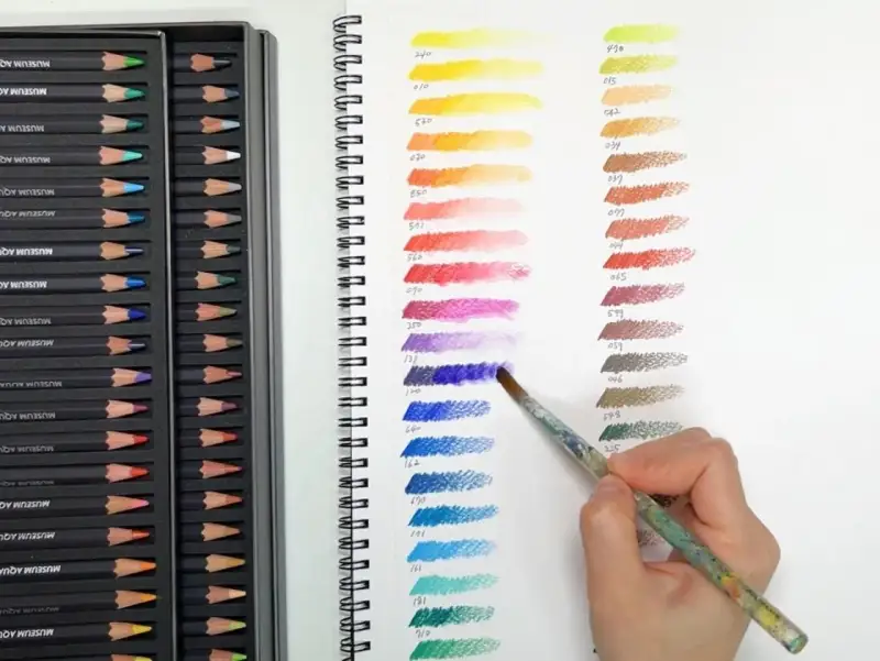 까렌다쉬 뮤지엄 아쿠아렐 색연필은 수채화 화가들과 협력하여 생산된 최고급 품질의 수성 색연필인데요, 높은 피그먼트 농도와 우수한커버력을 자랑한다고 해요 :)