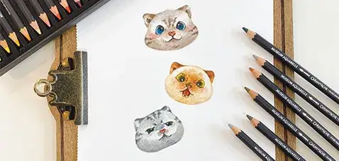 까렌다쉬 수채색연필 40색으로 그린 고양이 삼총사 - 화방넷 커뮤니티