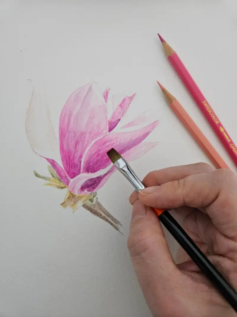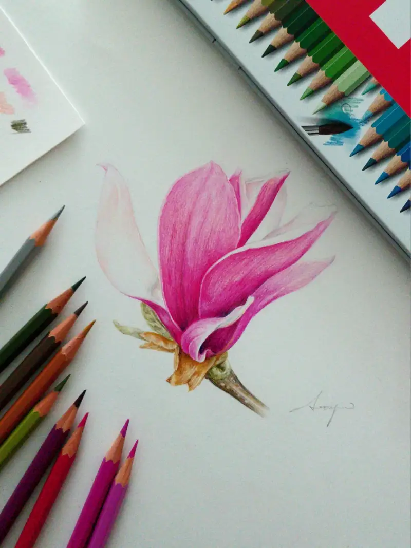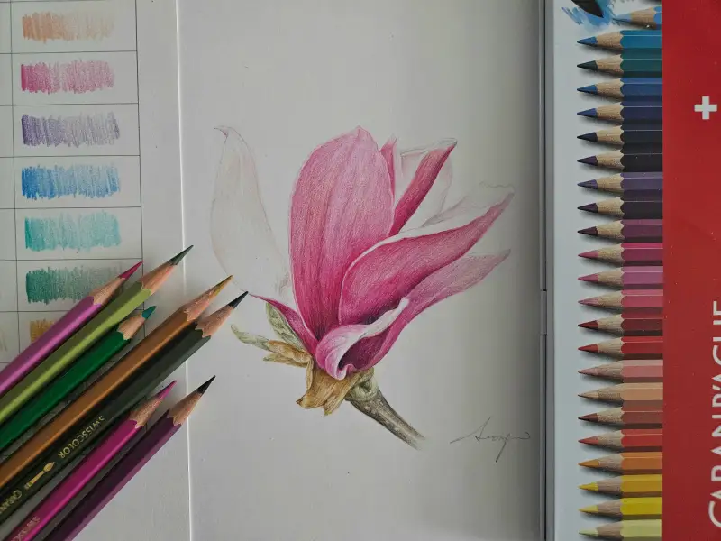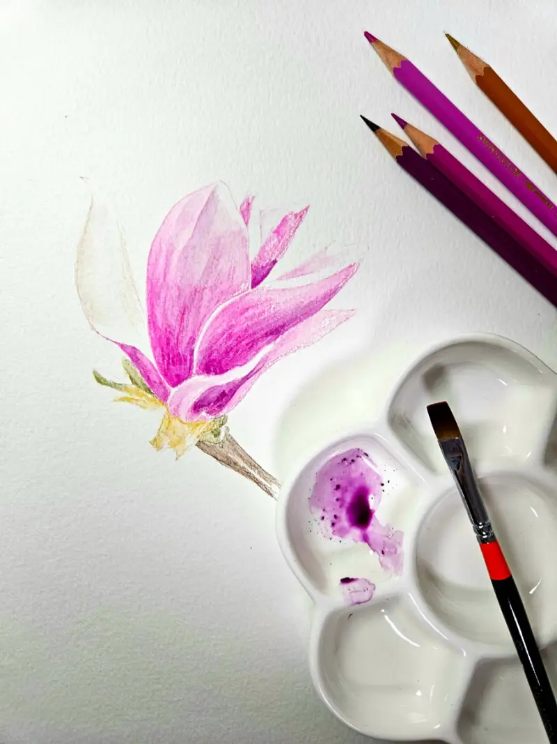 [까렌다쉬 스위스칼라 아쿠아렐 40]으로 요즘 지천에 피어있는 예쁜 자목련을 그려볼게요!