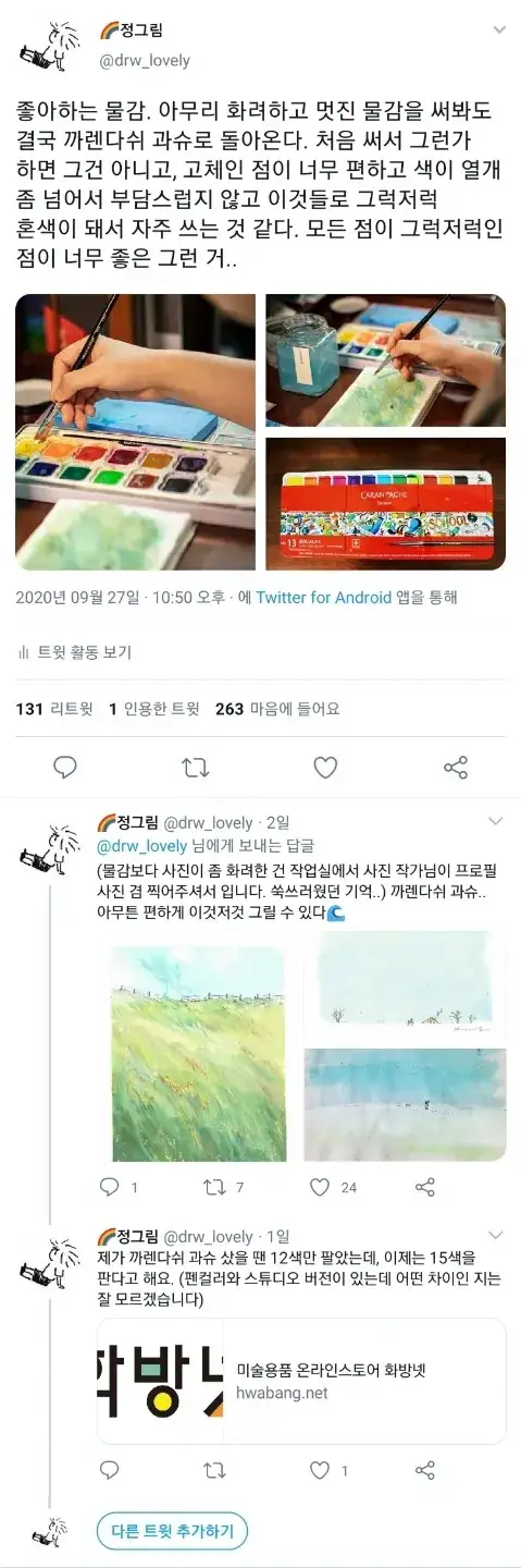 까렌다쉬로 과슈를 입문했는데 좋고 편안해서 계속 사용하고 있어요.