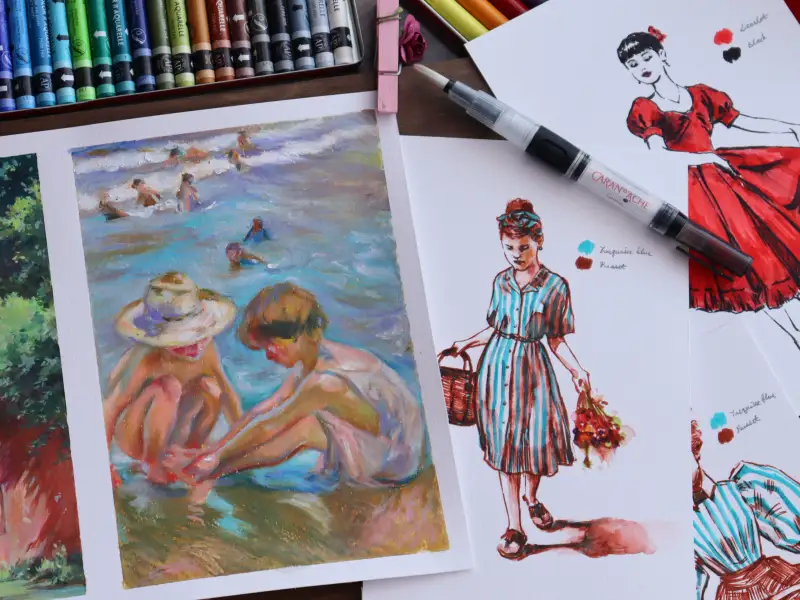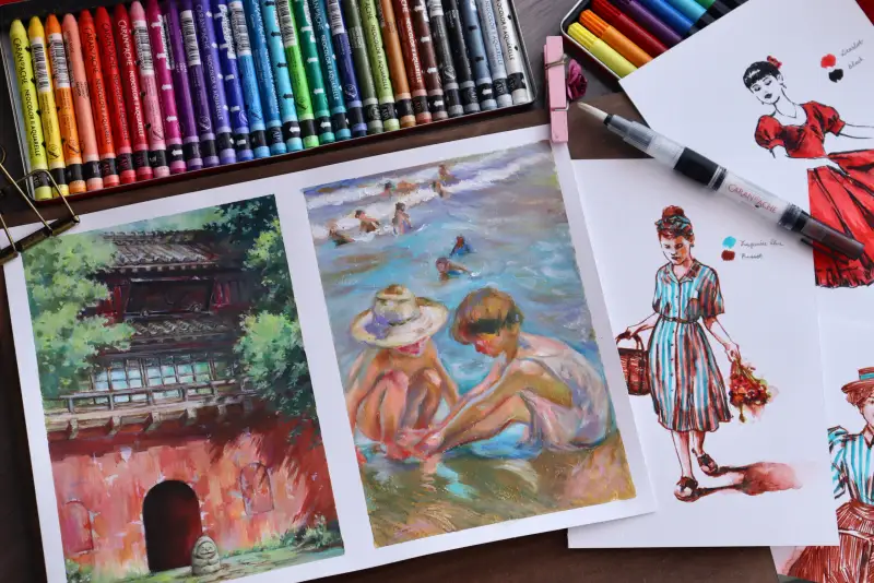 과슈를 제외하고 모두 처음 접해본 재료라 뭘 그릴까 고민하다가 까렌다쉬 리뷰는 여름이랑 잘 어울리는 그림들로 채워봤어요🩵