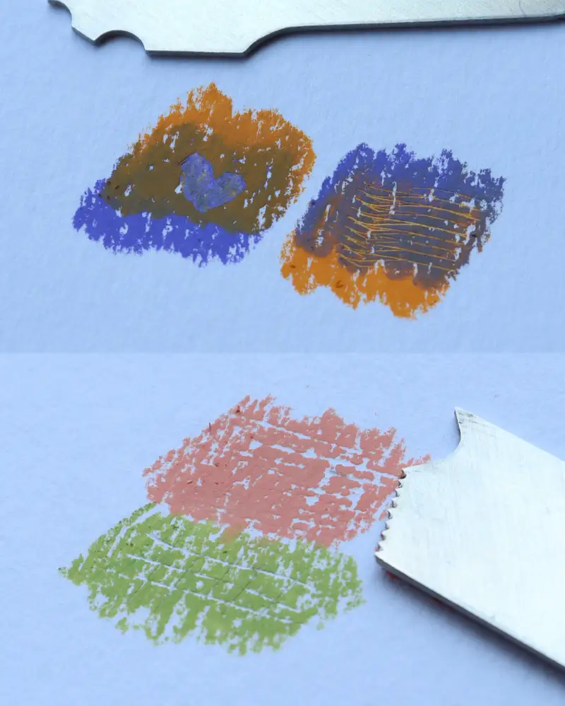 네오컬러2 크레용을 사용할 때 중간중간 색이 마음에 들지 않을 때 긁어내고 다시 색을 올릴 때 유용했어요.