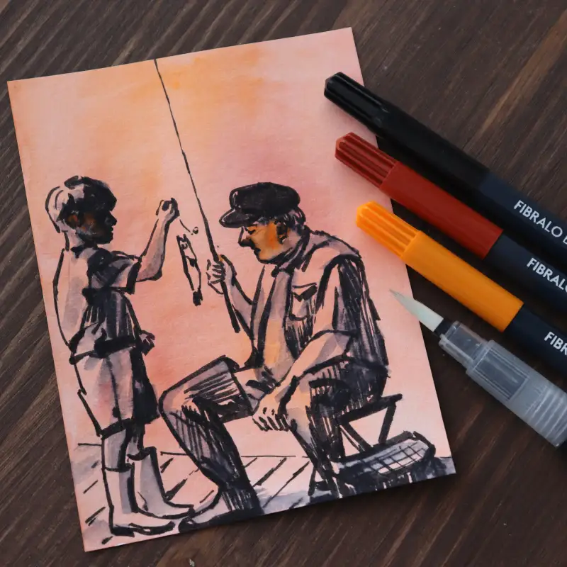 저는 피브라로 펠트펜워터브러쉬를 함께 사용해 간단한 드로잉을 해보았는데요!