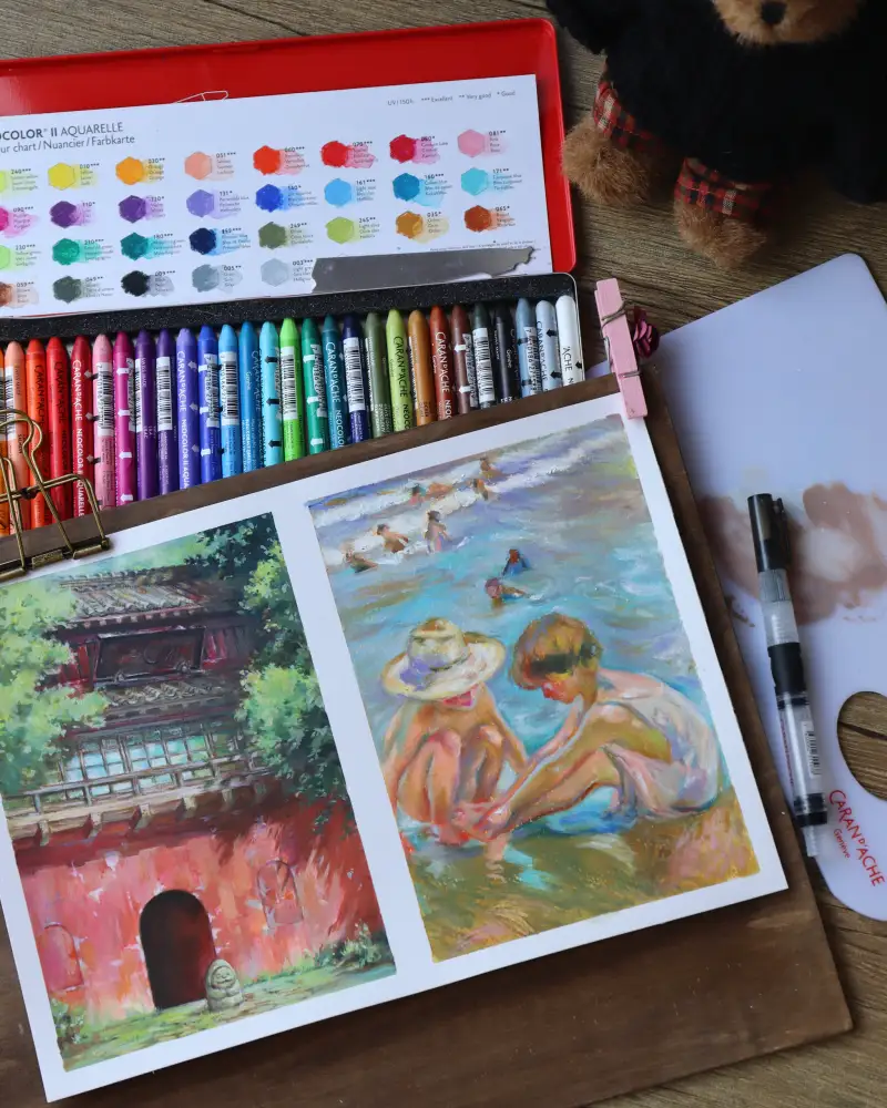 오일파스텔보다 좀 더 가볍게 사용할 수 있고 수채효과도 줄 수 있어 자주 사용할 것 같아요😍