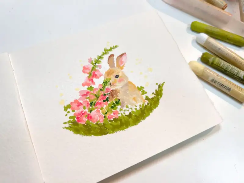 꽃향기를 맡는 토끼, 카디페이퍼에 그려보기