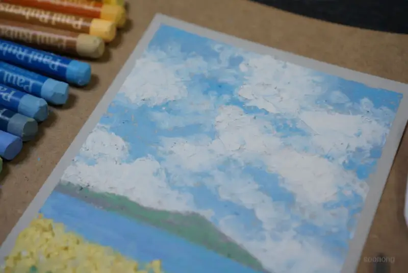 그 위에 구름의 질감을 살리고 싶어서....