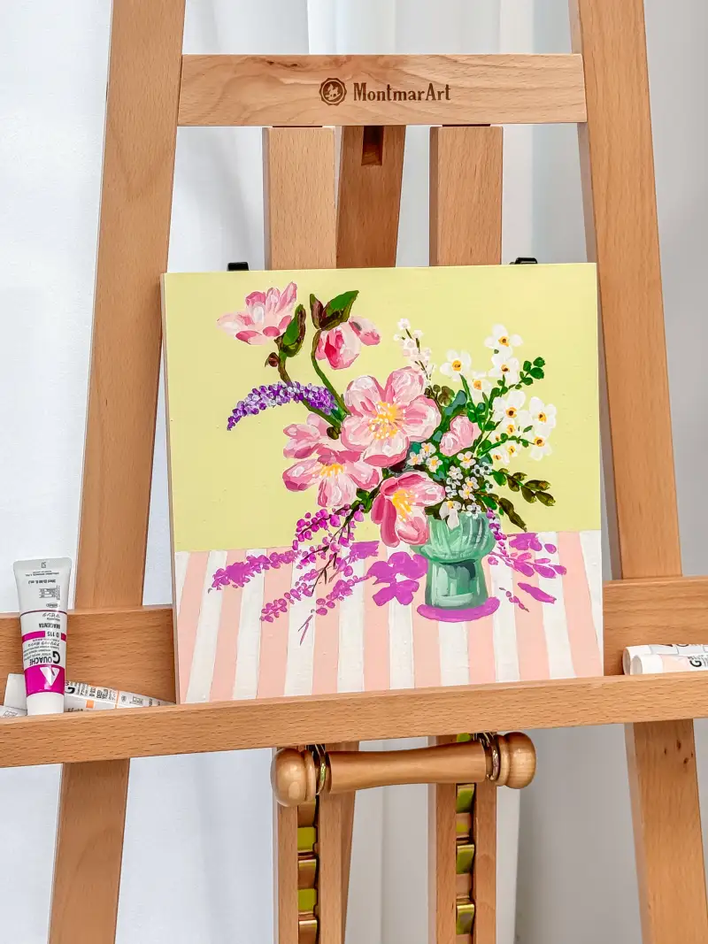 바로~ 새 이젤에서 과슈작업을 해보았어요🩷