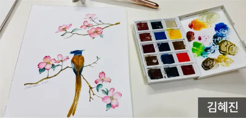 안료가 물에 녹아지는 느낌이 매우 부드럽고 발색도 선명했어요.