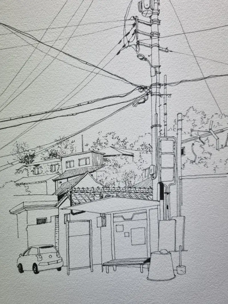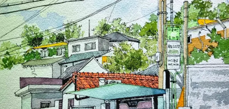 연필스케치 밑그림 없이 펜스케치에 가볍게 채색하니 만화의 한 장면 같은 분위기가 나네요.