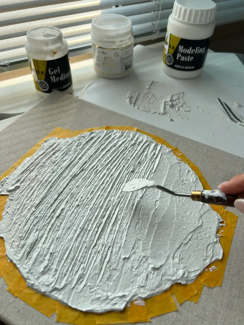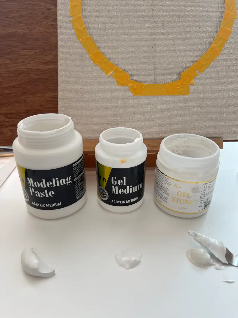 *겔미디엄은 아크릴화에 사용되는 보조제로, 물감에 섞으면 질감을 더 풍부하게 만들고, 모델링페이스트와 젤 스톤이 더 잘 섞이게 해주며, 두껍게 발라도 갈라지지 않게 도와주기때문에