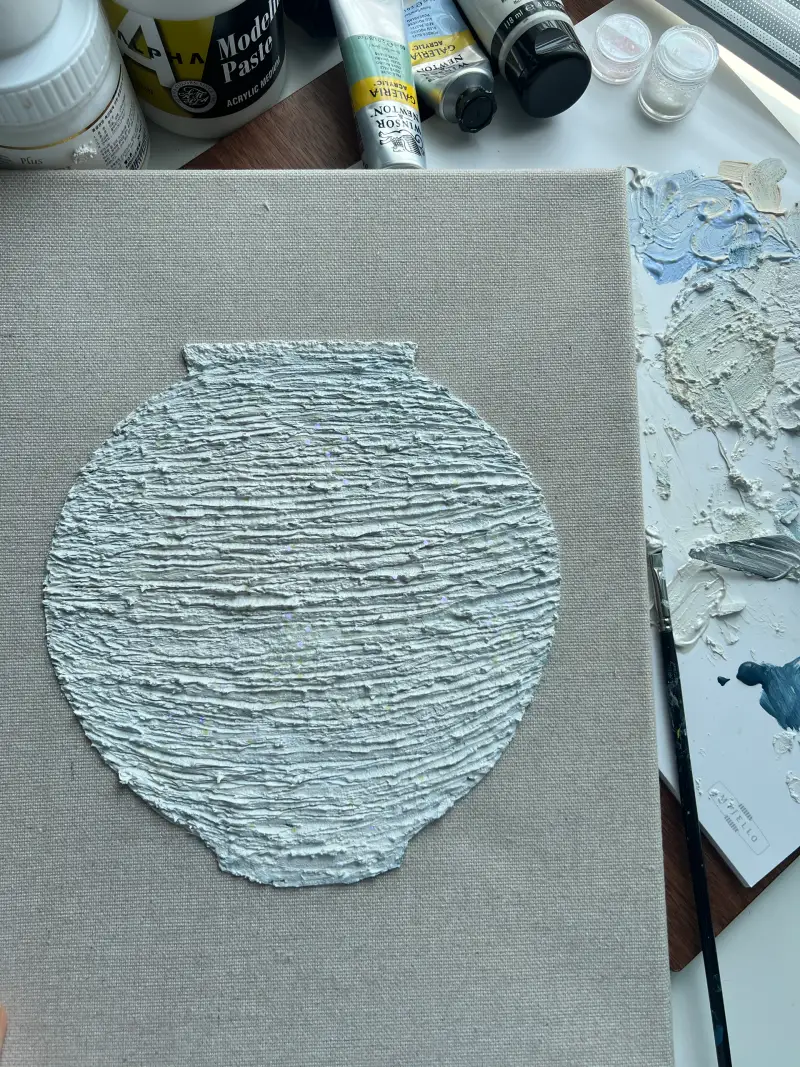 4.나이프로 입체적인 항아리의 결과 질감을 긁어서 표현하기