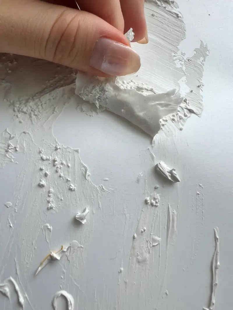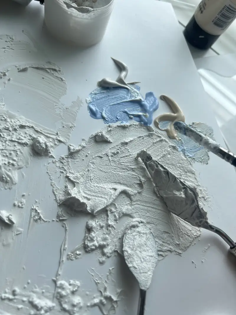 다시 흰색을 덮어서 나이프로 질감을 내주었더니