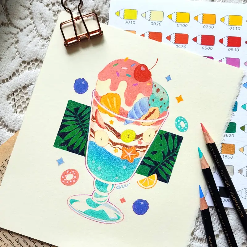 더웬트 크로마플로우 72색으로 여름 파르페 그리기 - 화방넷 커뮤니티