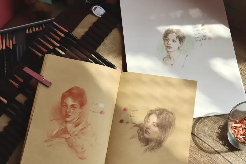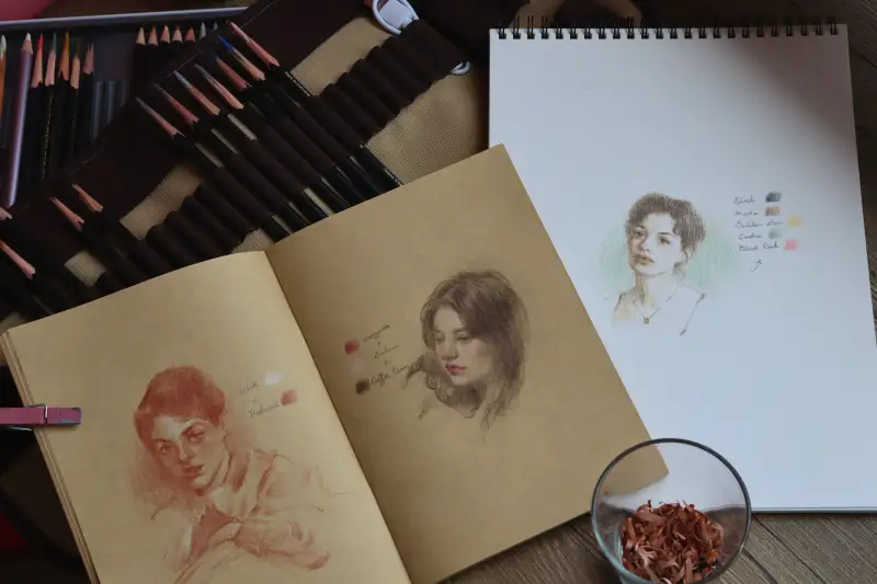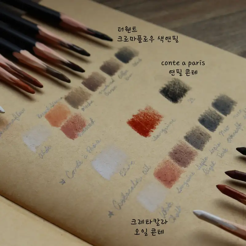 색연필이라 콘테 만큼 깊은 색은 아니지만 느낌 내기 충분하고 가루 날림이랑 손에 묻어남이 거의 없어서 콘테보다 가볍게 사용할 수 있어요.
