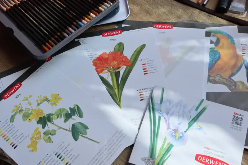 동물/보태니컬 중 랜덤 증정이며 초보자도 쉽게 그려볼 수 있게 사용 색상들이 상세하게 적혀있어요.
