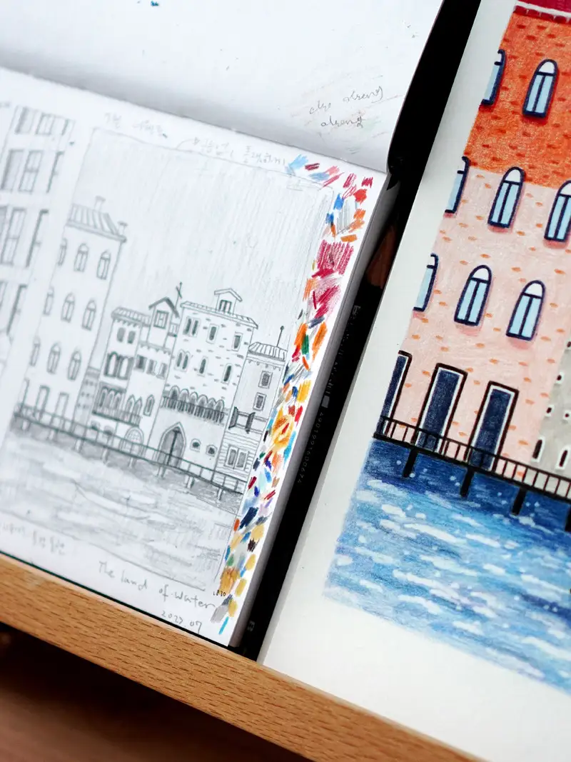 부드러운 크로마플로우 색연필과 세르지오 스케북의 결이 만나니