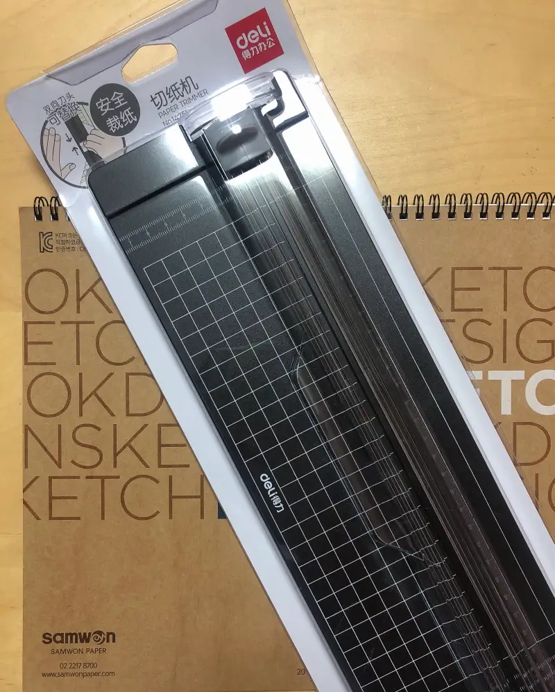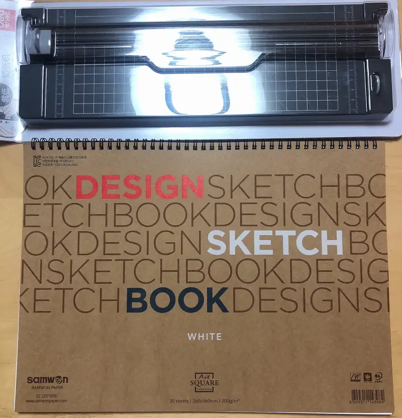 이번 제품은 델리 트리머 재단기와 삼원 아트스퀘어 디자인스케치북 200g 8절지입니다~