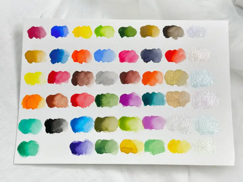1. 길상 안채접시 고체물감 48색 세트는 채도 높은 색들이 주를 이뤘고, 펄감있는 물감들이 너무 매력적이라 그림에 많이활용해봤습니다~!~! 쟈글자글한 예쁜 펄컬러들은 눈에 아른아른 할 것 같아요!