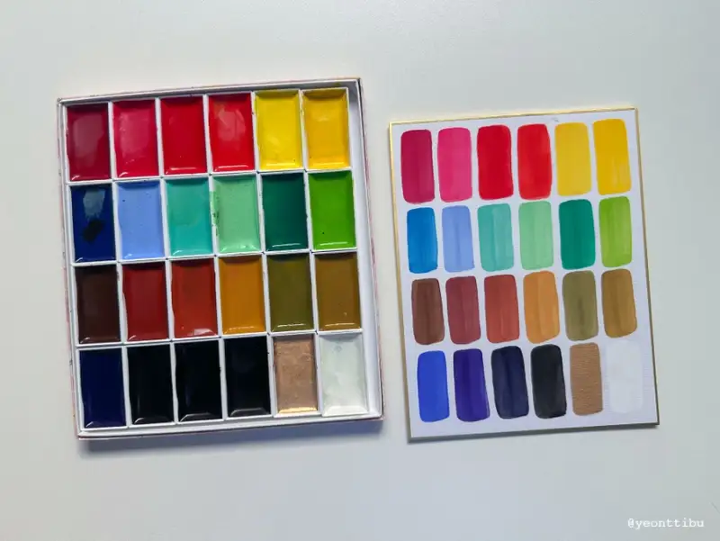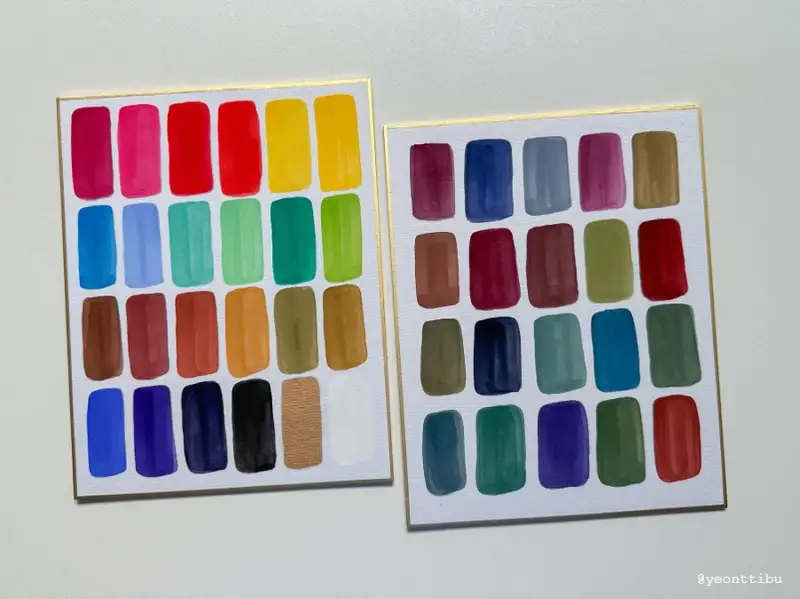 (아교 포함 여부, 입자 크기, 용도 등 물감의 성질이 각각 다르더라구요!)