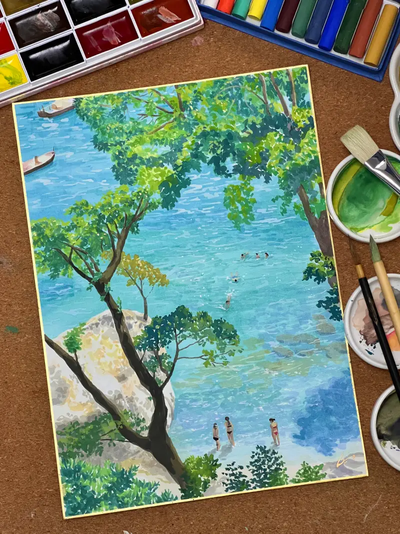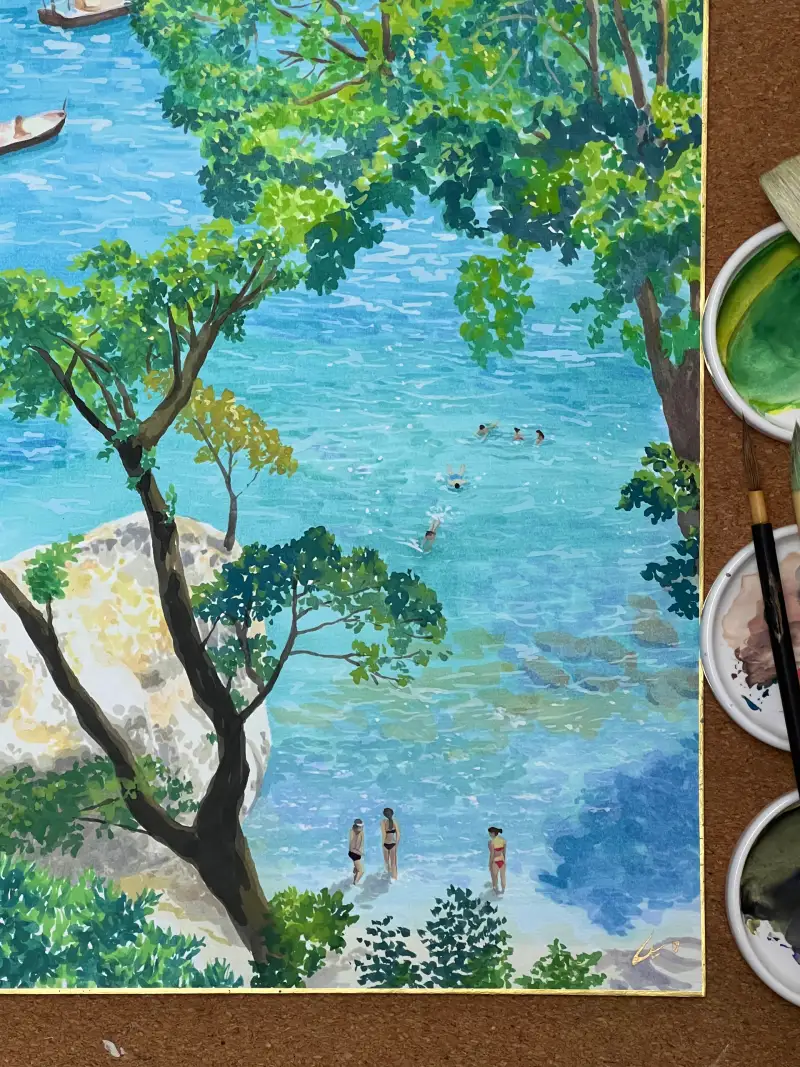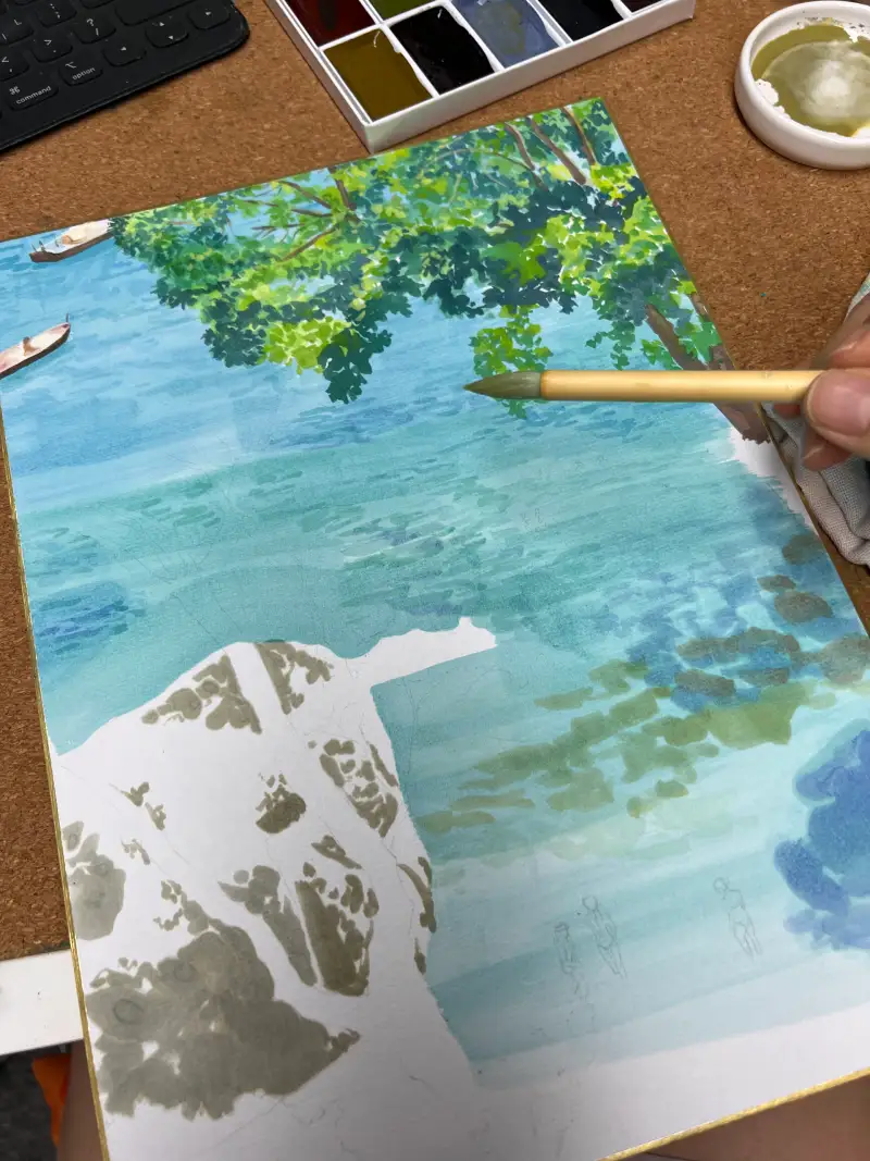 수채화를 잘하시는 분들이라면, 이런 일본화재료로도 얼마든지 잘 그리실 수 있겠다는 생각을 했어요. 색감이 수채화보다는 약간 더 차분하게 느껴졌어요. 그래서 분위기에 따라 재료를 선택하는 재미도 있지 않을까 합니다.