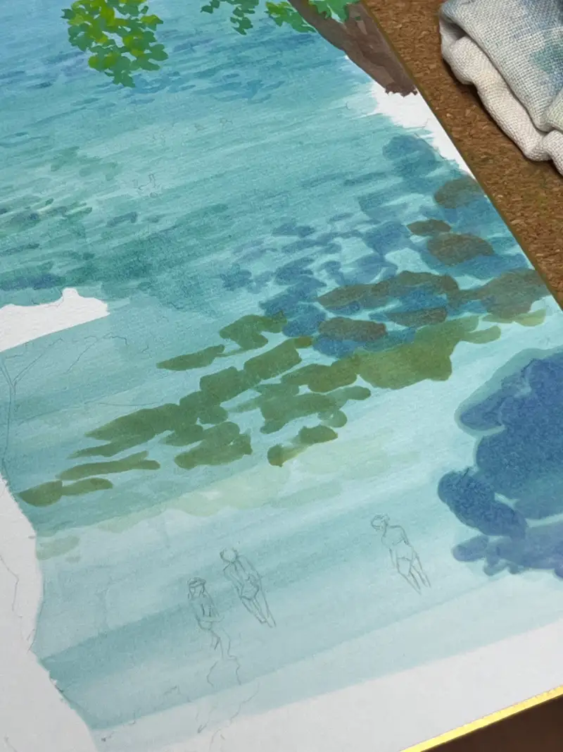 물감은 약간의 테스트를 거쳐보니, 수채화와 수채과슈 사이의 물감같다는 생각을 많이 했습니다.
