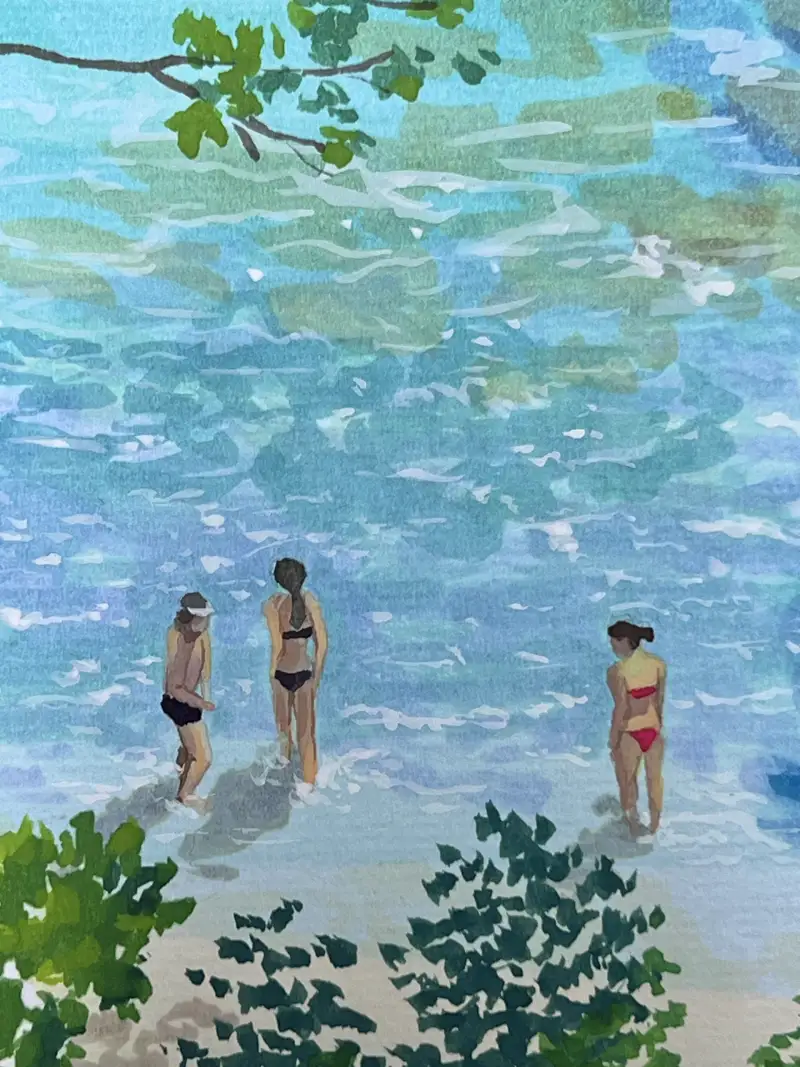사람과 파도 부분을 그릴 때 얋은 붓으로 그려서 세밀한 작은 대상도 잘 그려졌어요.