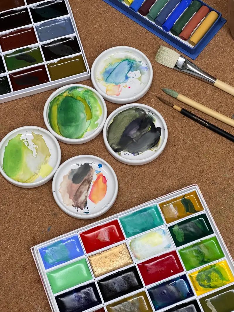 수채과슈는 불투명한데, 이 동양화물감에도 불투명의 색들이 있어서 비슷하다고 생각했습니다.