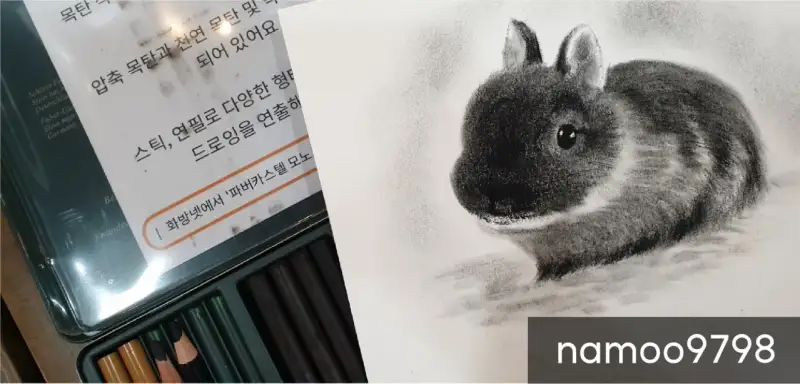 목탄으로 토끼를 그리는데 가루 냘림도 없이 너무 깨끗히 잘 그려지는거에요.
