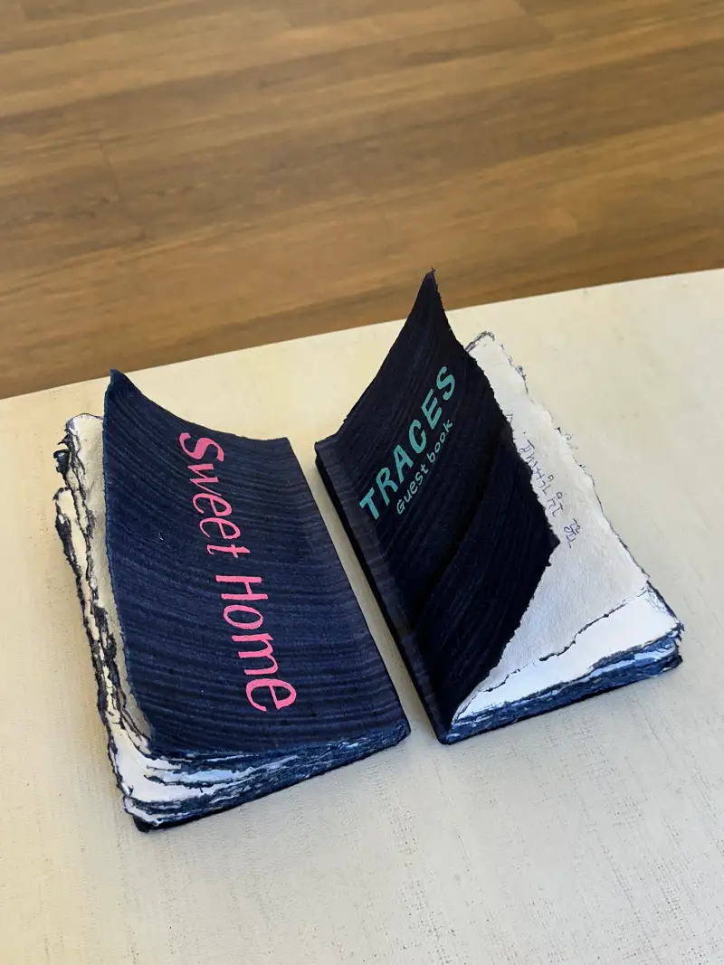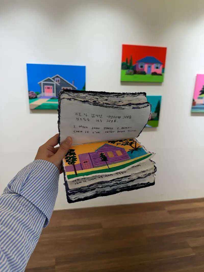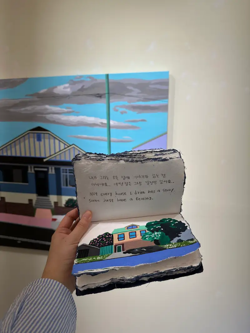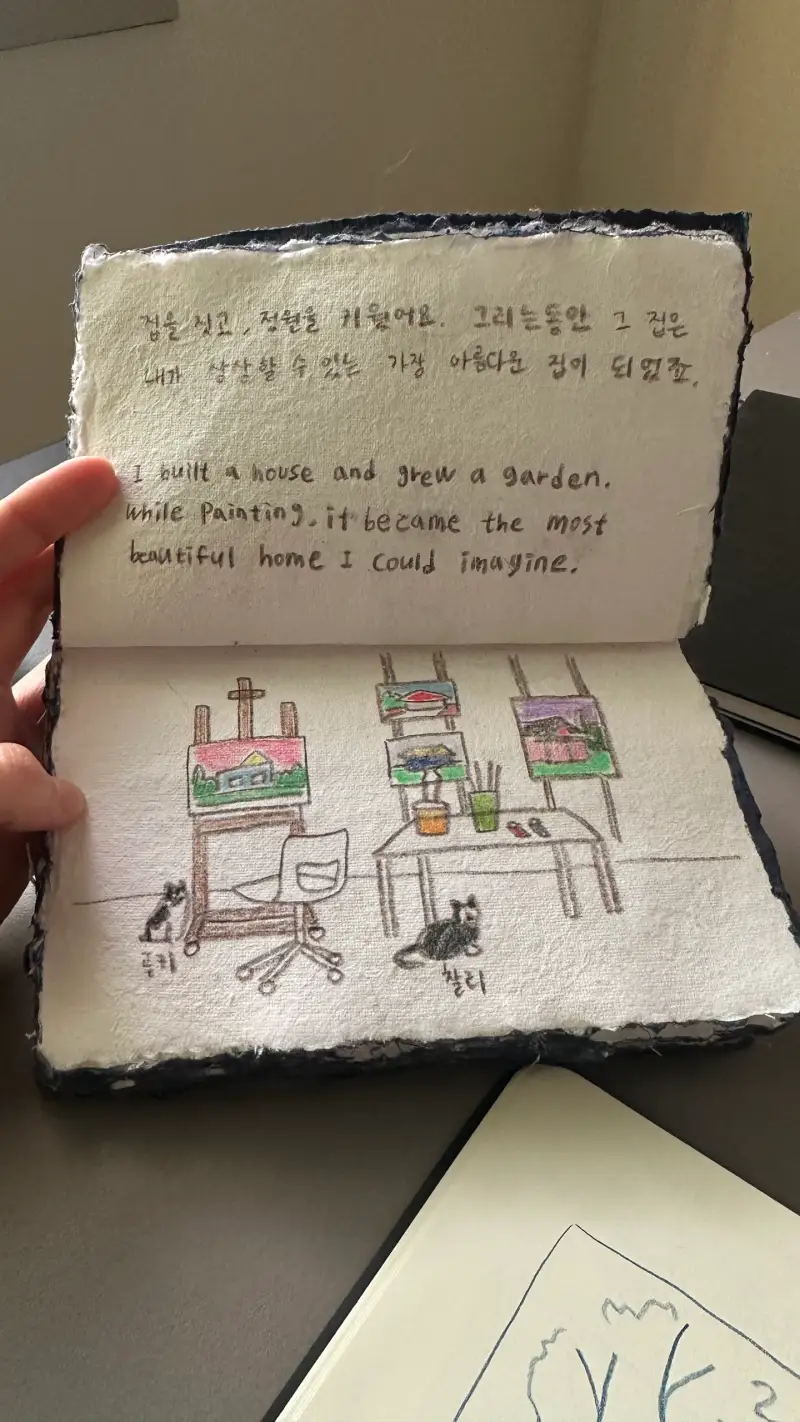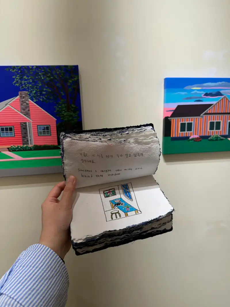 총 두 권을 준비했는데, 한 권은 제가 작업하며 남긴 기록을 담았고, 다른 한 권은 방명록으로 전시장에 비치했습니다. 그림을 본 뒤 짧은 감상이나 메모를 남겨주시면 저에게도 오래 기억에 남을 것 같아요.