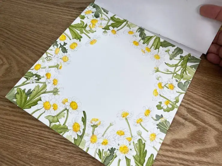 마트리카리아 꽃을 중심부를 비워놓고 사방에 빙 둘러 배치하여 그려보았습니다.