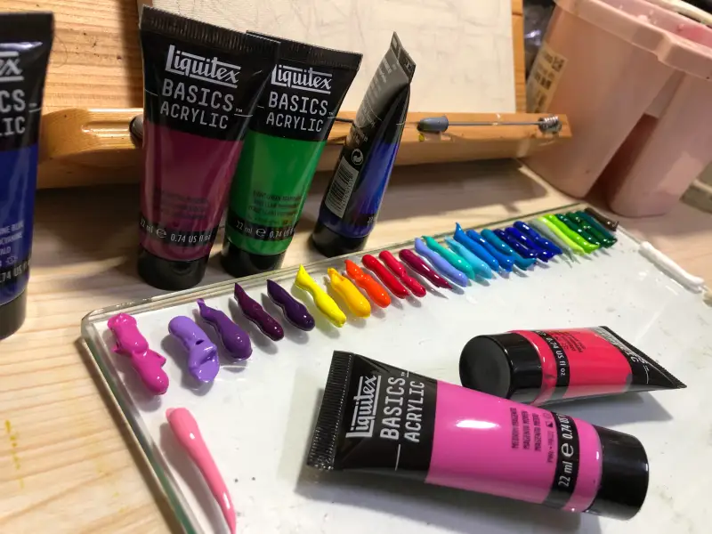 색상 수가 많을 경우 파레트 물감 짜는 방법 꿀팁과, 거의 조색 없이 작업을 완성했고 최대한 리퀴텍스의 다양한 색상이 담겨질 수 있는