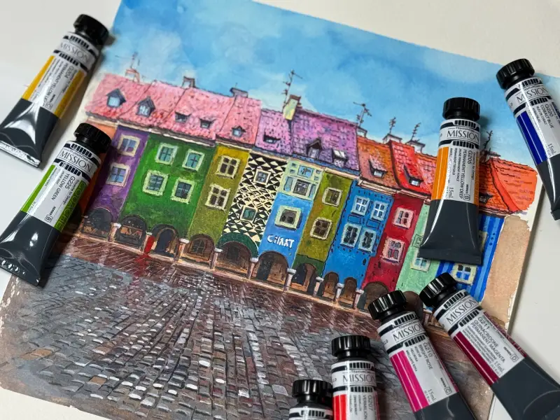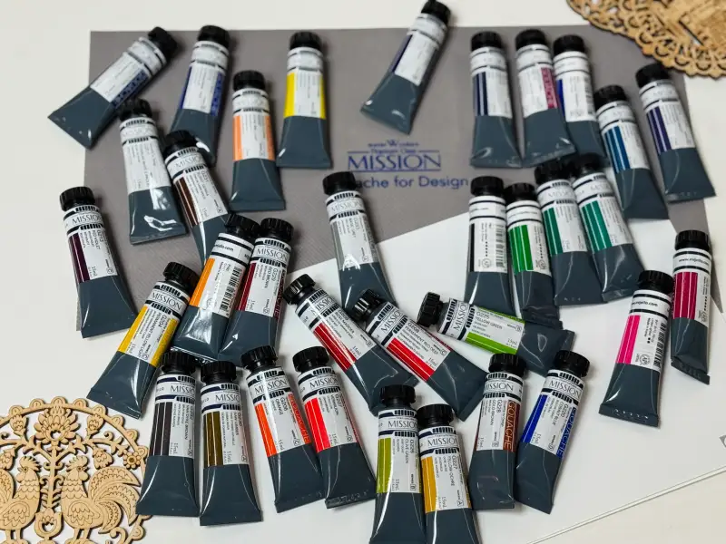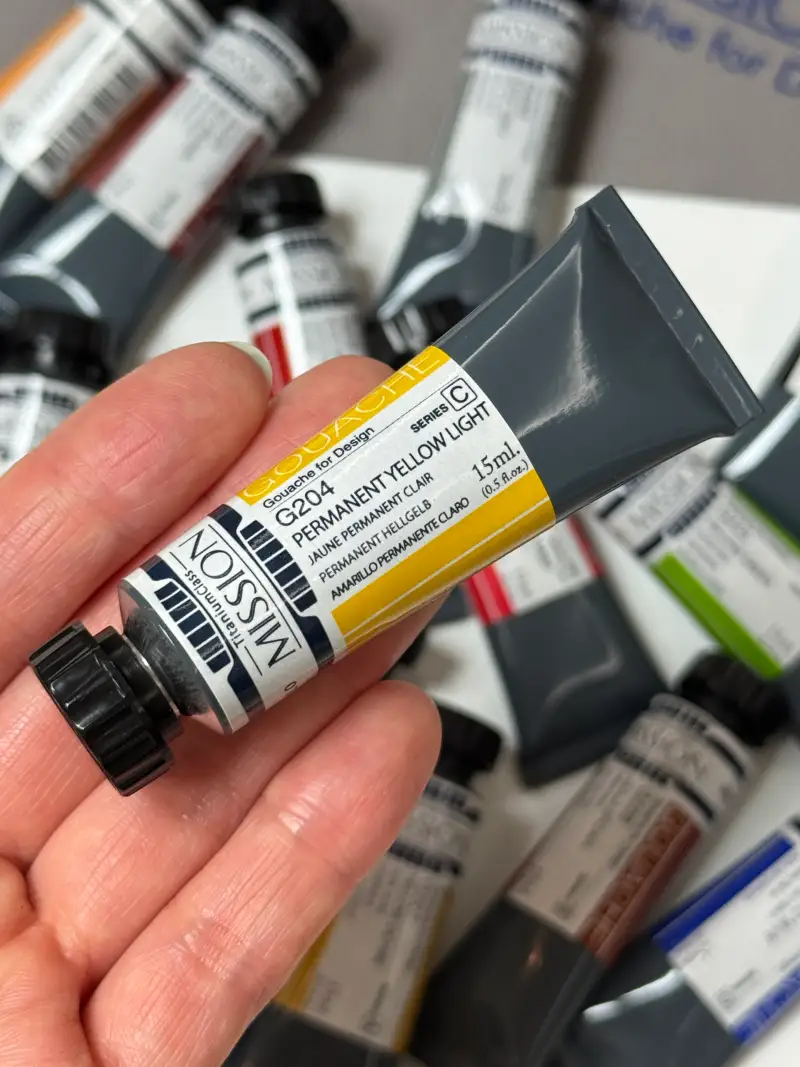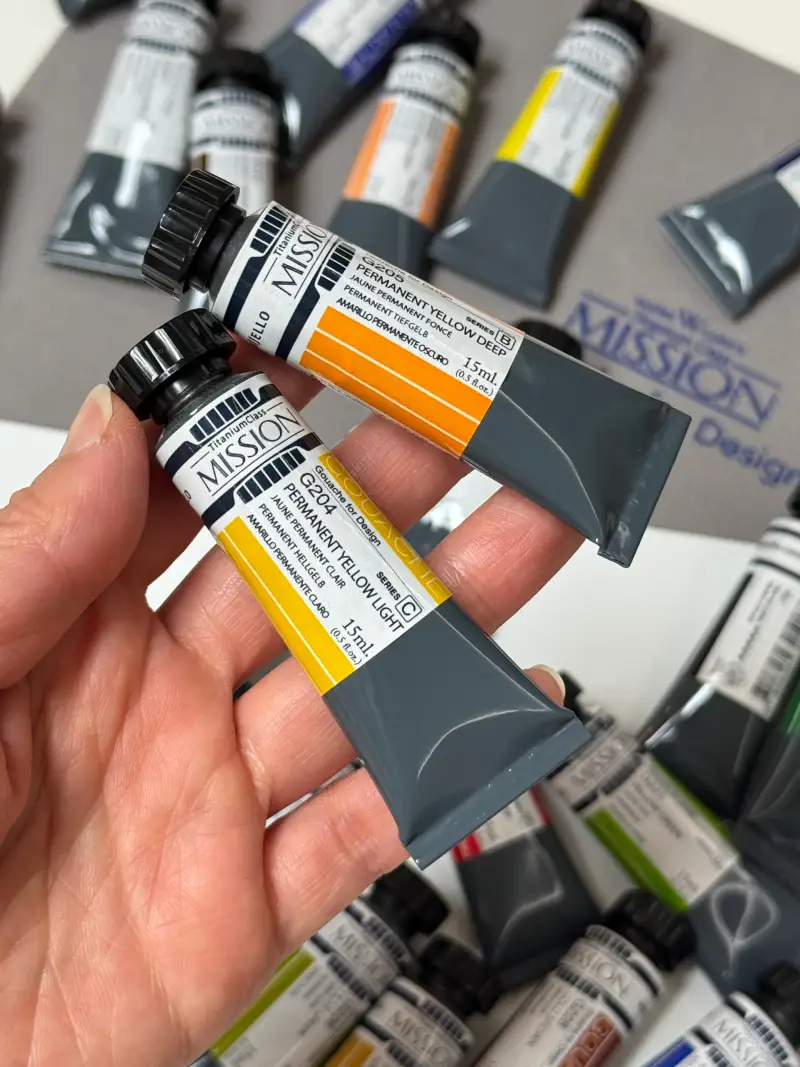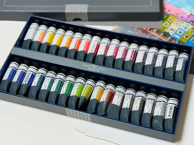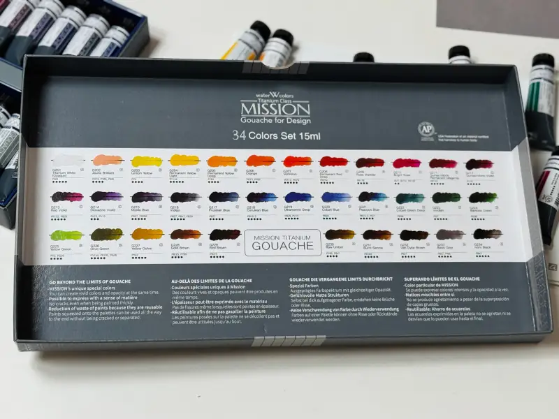 미젤로 과슈를 선택한 이유는 다른 과슈와 다르게 용해력이 뛰어나고 팔레트에 짜놓고 사용해도 건조 후 물에 쉽게 녹아 처음 과슈 그대로 사용이 가능하기 때문에 명성이 자자했거든여.