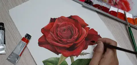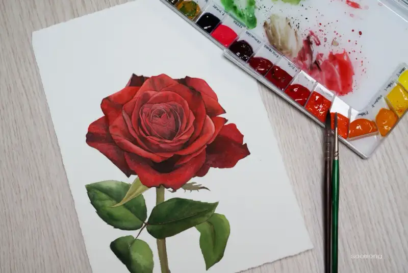 맑고 선명한 몽마르아트 수채화 물감으로 붉은 장미그리기
