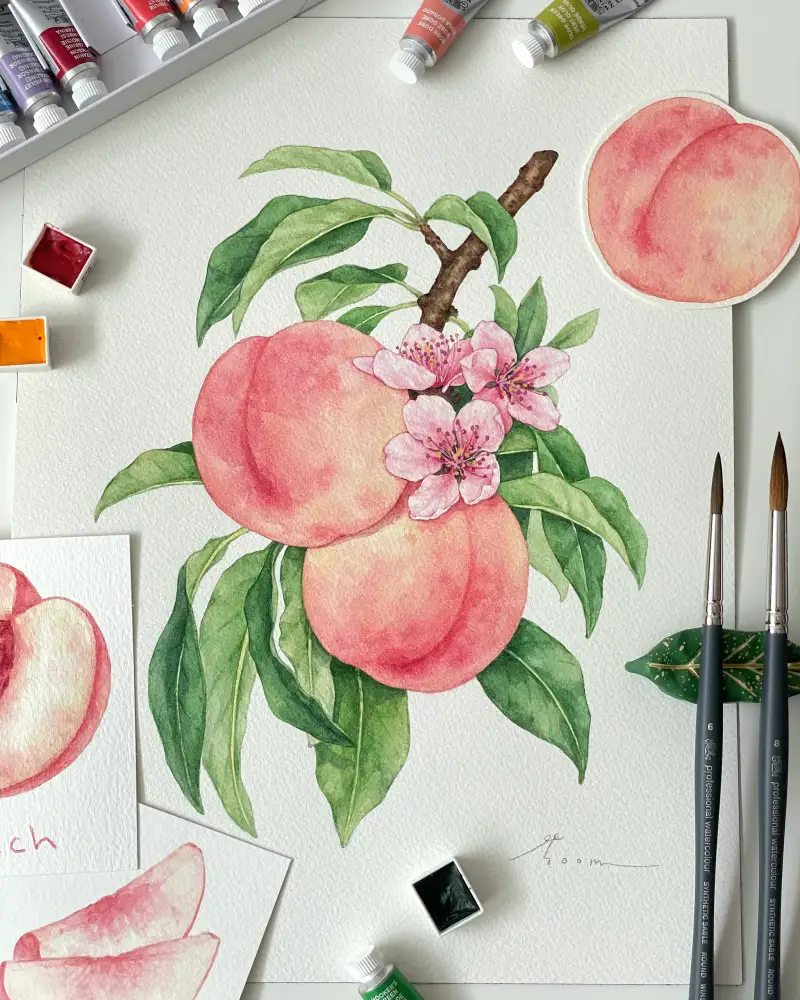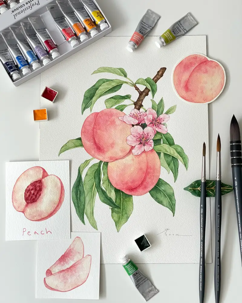 전체적인 발색은 맑고 선명하면서 마르면 차분해지는게 자연물 그리기 좋았어요.