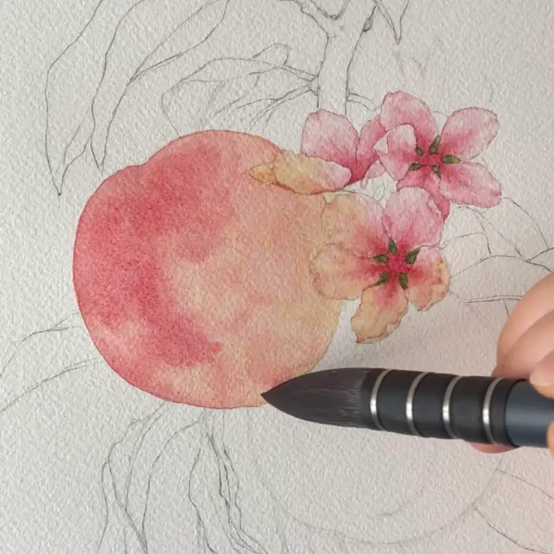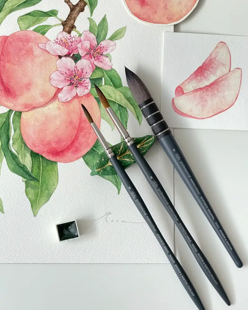 셋 중 제일 큰 붓! 복숭아를 번지기하며 칠할 때 사용했어요.