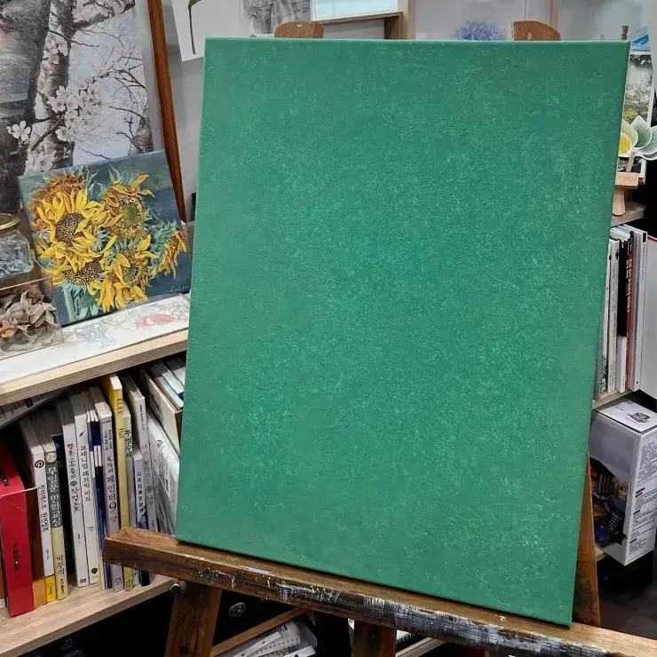 다 마른 후 아크릴물감(비리디안)응 아주 연하게 덧칠합니다.