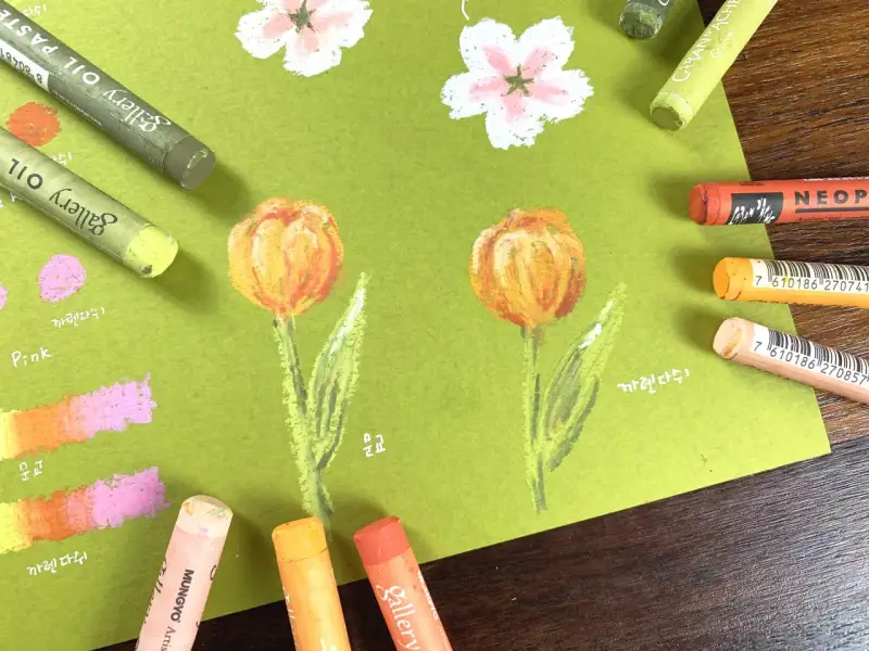 문교와 까렌다쉬 오일파스텔 비교하기