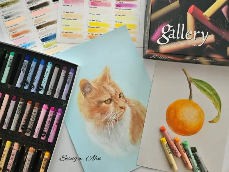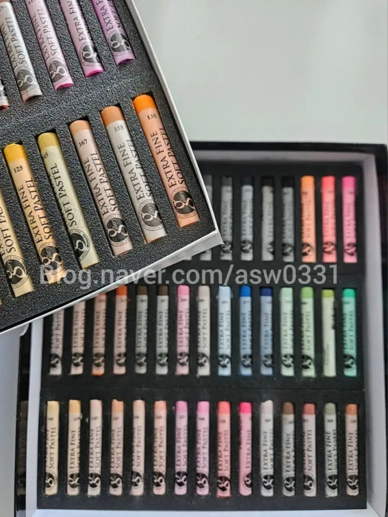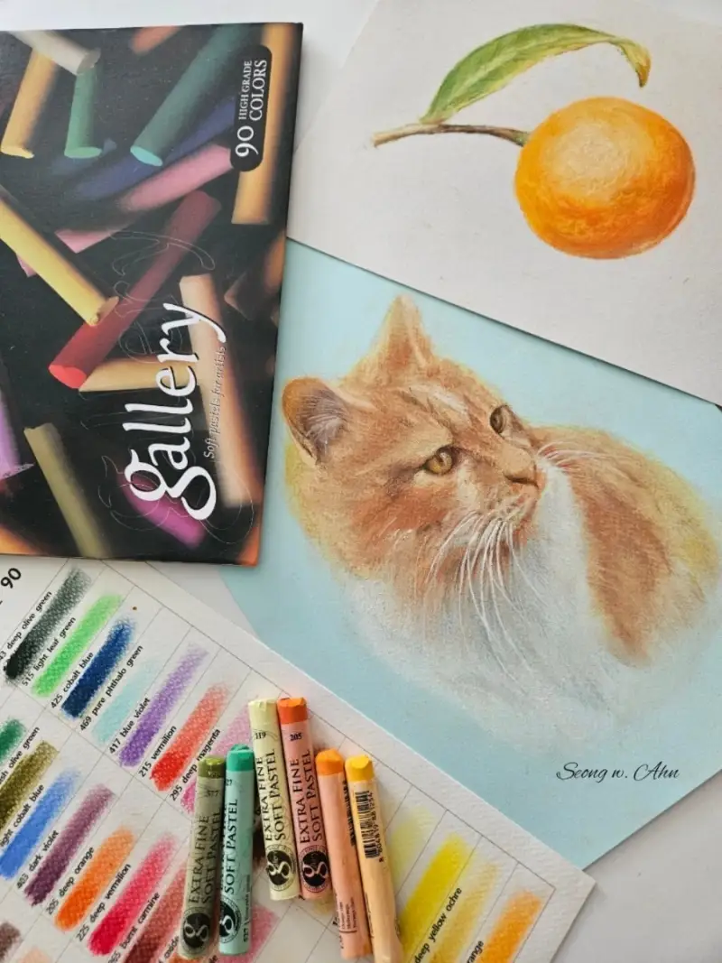 파스텔 중에 소프트 파스텔은 특히 가루가 많은 낯선 재료라 적응이 필요하고 까다로운 재료에요. 처음부터 비싼 재료를 사용하는 것보단 저렴한 파스텔로 충분히 트레이닝 해보는 것도 경제적인 학습법이 될 것 같아요.