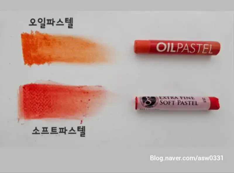 사각과 둥근 파스텔을 비교해 보니 정말 질감이나 색이 비슷한 걸