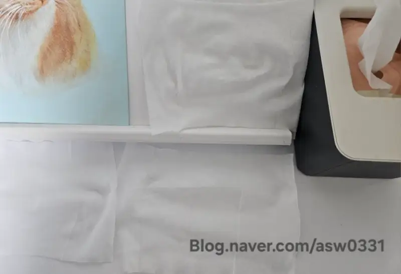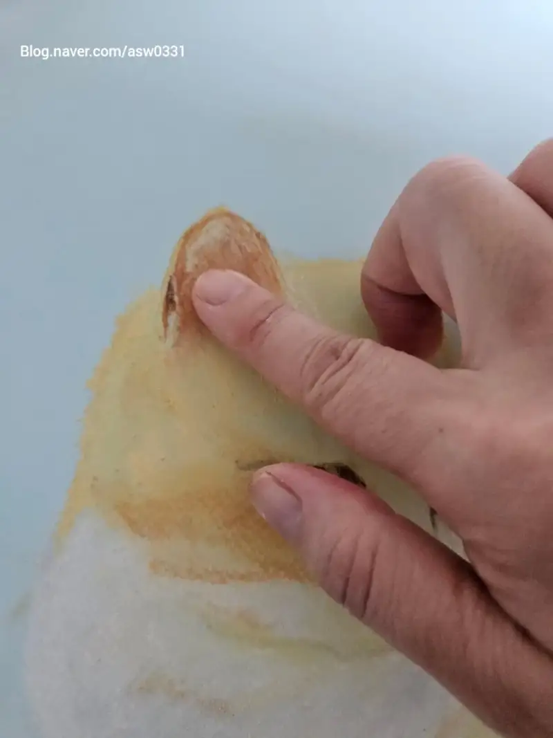 분무기로 주위에 신문지에 뿌려주거나 물티슈를 주위에 깔아두어도 가루가 덜 날리고 좋아요.