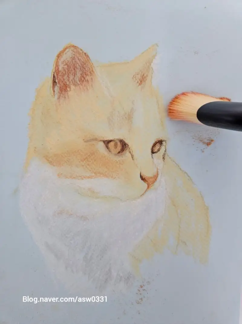 먼저 고양이의 몸체 부분을 꼼꼼히 연한 색으로 칠해줘요.