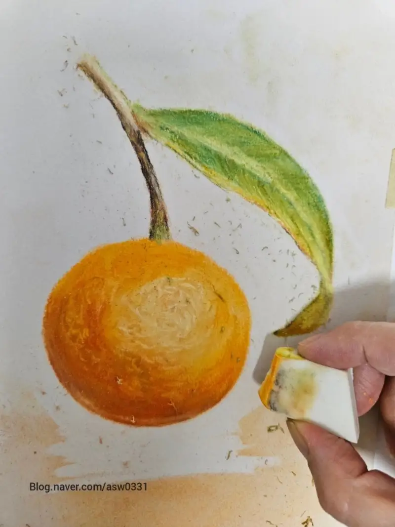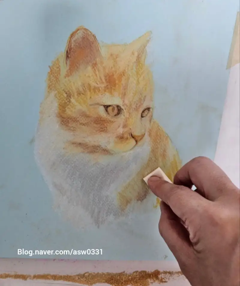 주위에 묻은 파스텔 가루는 지우개로 깨끗이 지워 정리하면 완성입니다.