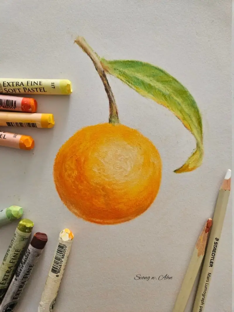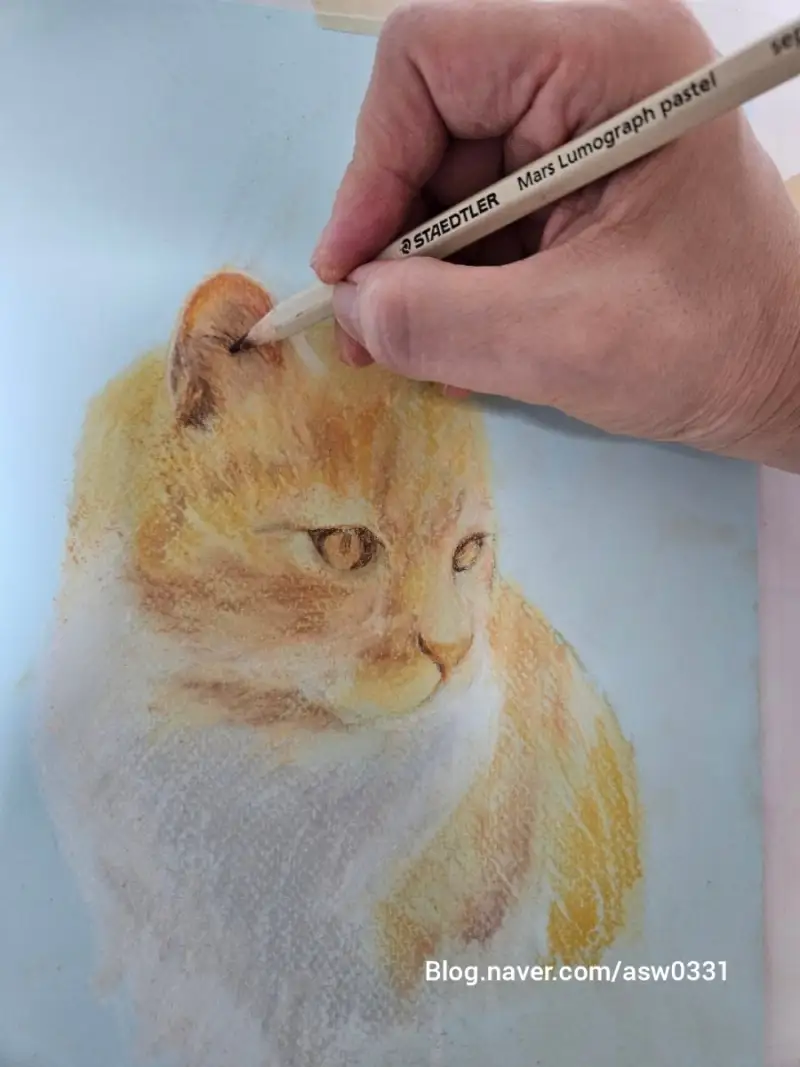 세밀한 부분은 유성색연필로 그려도 좋지만 저는 갖고있던 스테들러 연필파스텔이 있어서 그걸 사용했어요.