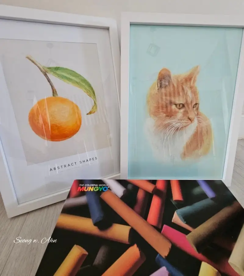 마음에 드는 그림은 유리 액자에 넣어두면 픽사티브를 뿌리지 않아도 깨끗하게 보관 가능해요.